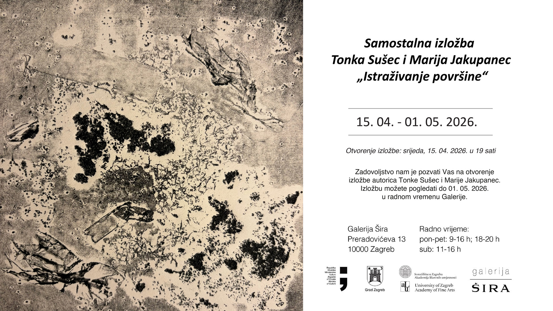 Sveučilište u Zagrebu, Akademija likovnih umjetnosti u Zagrebu donosi rezultate natječaja za izlaganje u Galeriji Šira u 2026. godini.