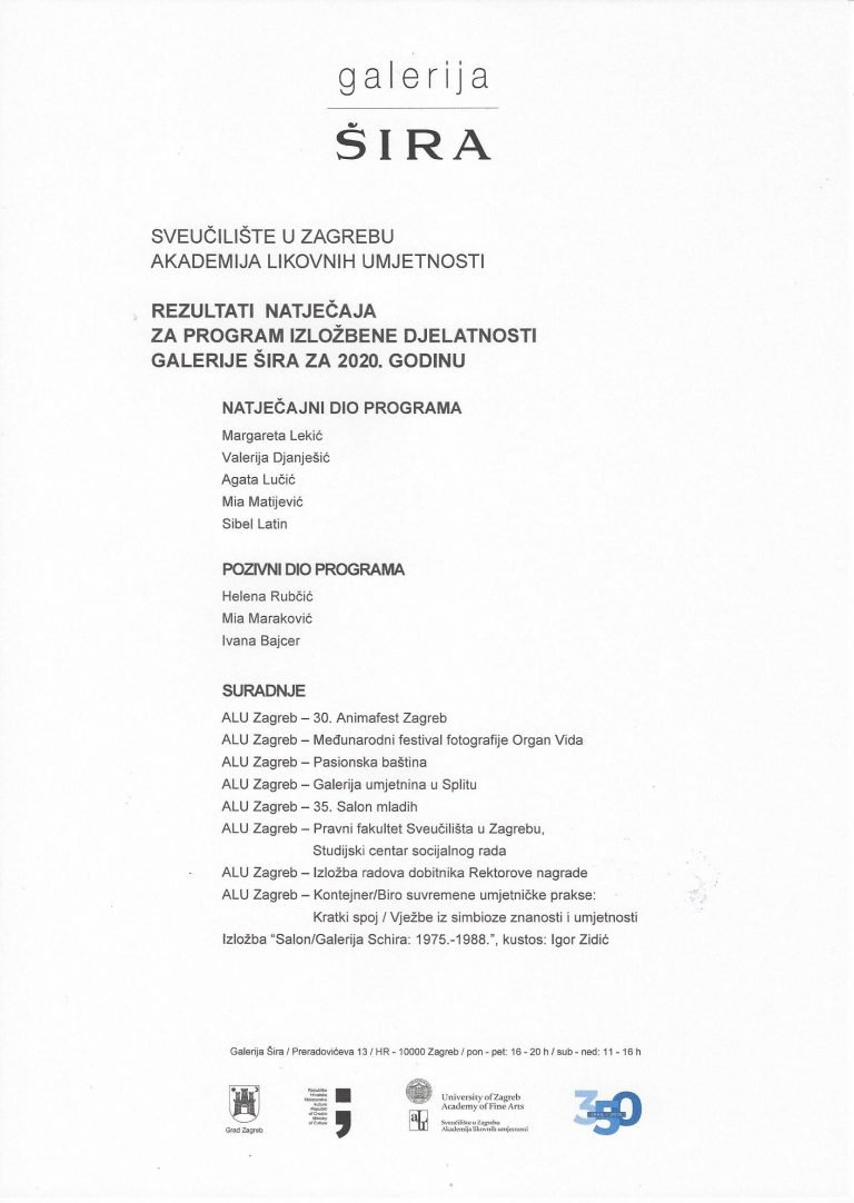 za izlaganje u galeriji ŠiraSveučilište u Zagrebu